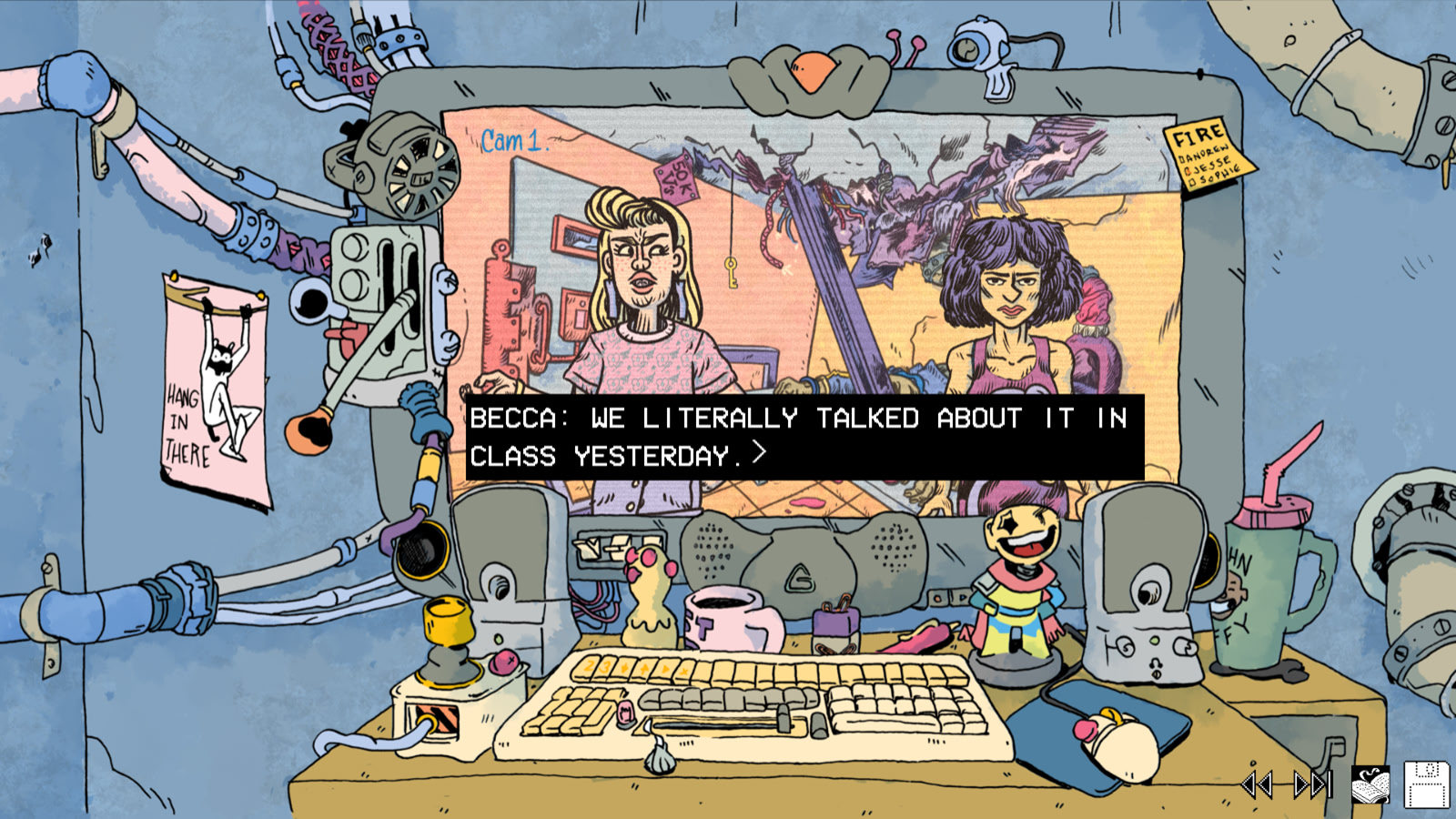 The year is 2035, it's Harry's second day at work at Roarktown Prison System, and something has gone wrong already -- a nuclear blast detonated outside his precinct and trapped him in his security booth! With the help (or the coercion) of his handler, the mysterious Ms. 27, Harry must find a way to convince a pair of mean teens to rescue him, or he will never Escape from Precinct 27.
