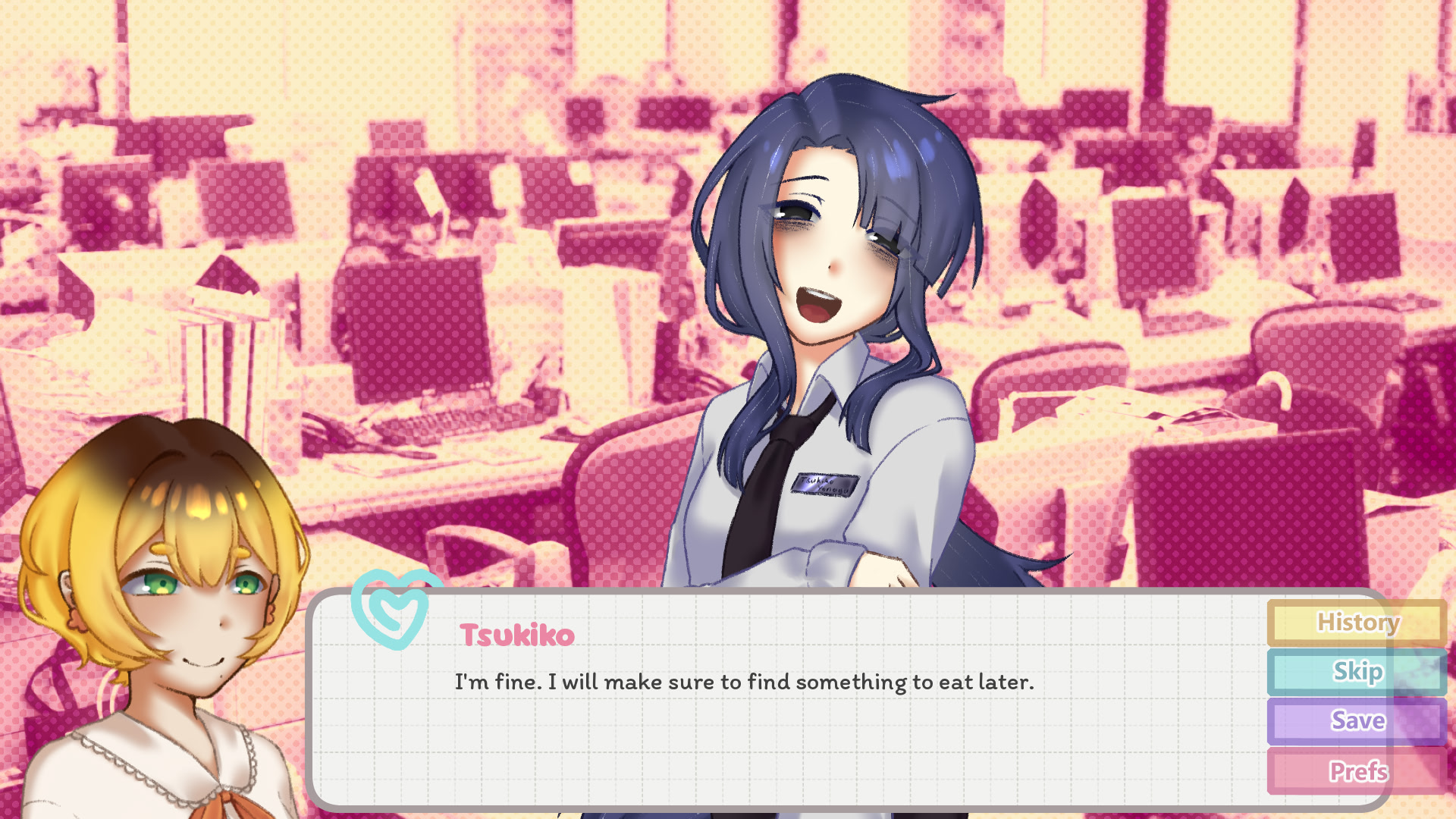 In this game, you will play as Haruko Hidaka, a regular office worker trying to get to know her junior, Tsukiko Yonaga, who seems super mysterious but is always acting extra nice to her. As the game progresses, she will be able to know more about Tsukiko and the secret hidden behind her. itch.io]
