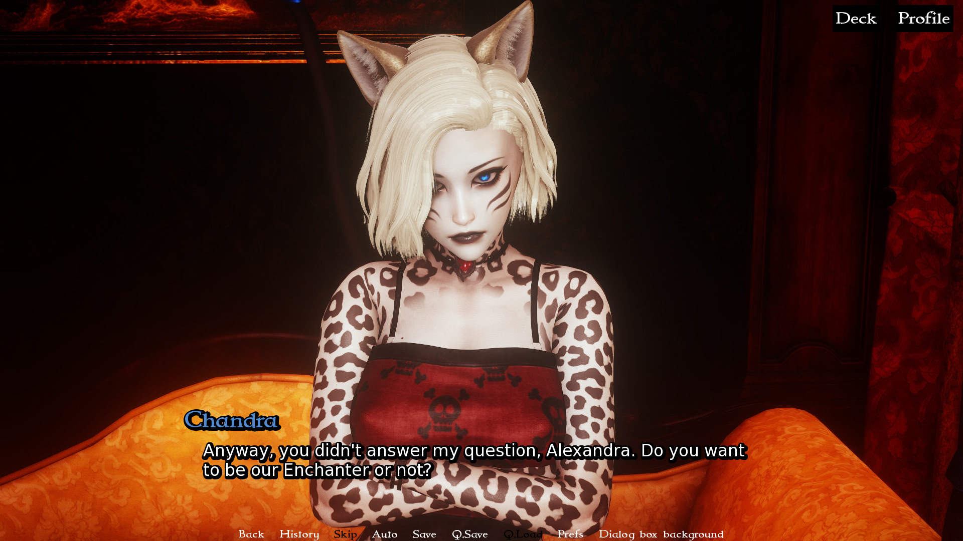 FurrHouse is a semi-harem vn with meaningful choices. In short you'll have to run a house with six hot monster girls. You can play as a man or as a woman(futanari). Often you will have to make choices that affect the attitude of girls towards you and the personality of your character. If you spoil your relationship with one of the girls and she decides to leave home, the game will stop and you will get an alternative ending (that will depends on your points). You can also form an alliance with one of the three other houses (sand demons, elves, and dark ones).
