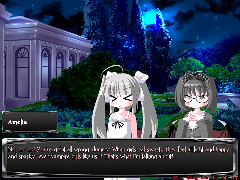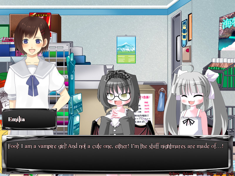 Join our cute and pure-hearted (and definitely not yaoi-obsessed!) school girl maiden, Fujiwara Reika, as strange, ~zany~ occurences end up with her taking care of two bratty loli vampire sisters, who don’t know how to get along. official site]