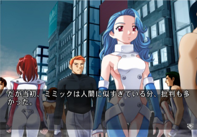 The game takes place in the near future where so-called "Mimic" robots work in place of humans. Playing as Reichi Kuroha, a member of a government investigation team, your job is to investigate the mysterious suicide of a Mimic -- a strange occurrence, since Mimics are not supposed to kill themselves. The game includes a number of heroines, both Mimic and human, with whom you'll get involved as the story progresses.