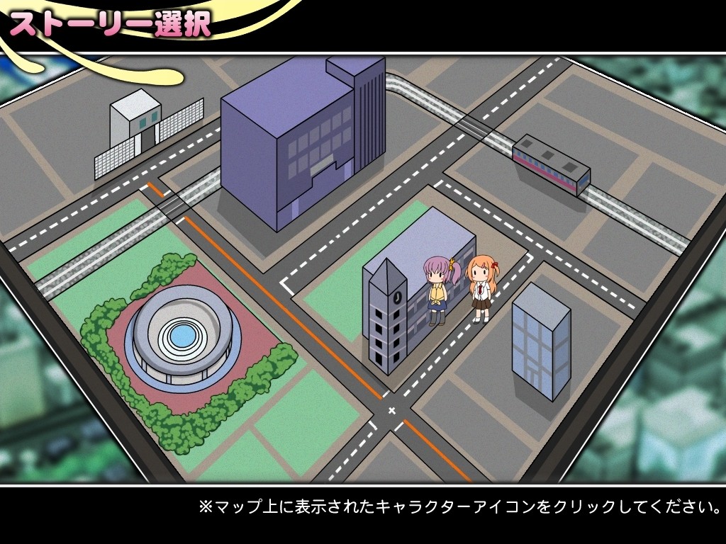 Two lolitas are just beginning to have an interest in sex. As the player you can choose how they hook up by clicking the icons on the town map. One time may be a student in the park, another time a business man at the train station. There are a variety of places and partners. DLsite English]